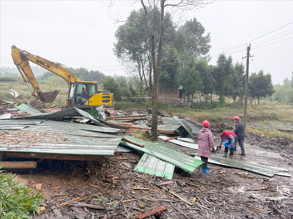 撤除现场安排有序、操作标准。撤除前,法律人员在违背相关规章的修建周边设置夺目的橙色警戒线,并逐户告诉邻近乡民留意避让与安全。随后,在法律人员引导下,挖掘机平稳进入作业区域。机械长臂精准作业,先撤除外侧立柱,再当心勾拉钢架横梁,跟着钢架慢慢落地,未发生碎片飞溅,有用保护了周边犁地不受二次损坏。